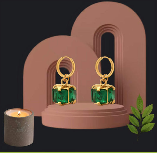 18K Gold-Plated Congo Hoop Earrings with Green Cubic Zirconia