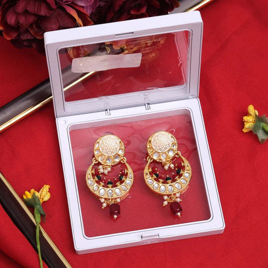 Maroon Color Kundan Dangling Earrings with delicate pearls